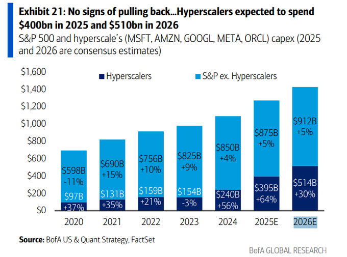 Ein Blick auf die Investitionspläne (CAPEX) der Hyperscaler (Microsoft, Amazon, Google, Meta, Oracle) lässt vermuten: Vorerst gar nicht.